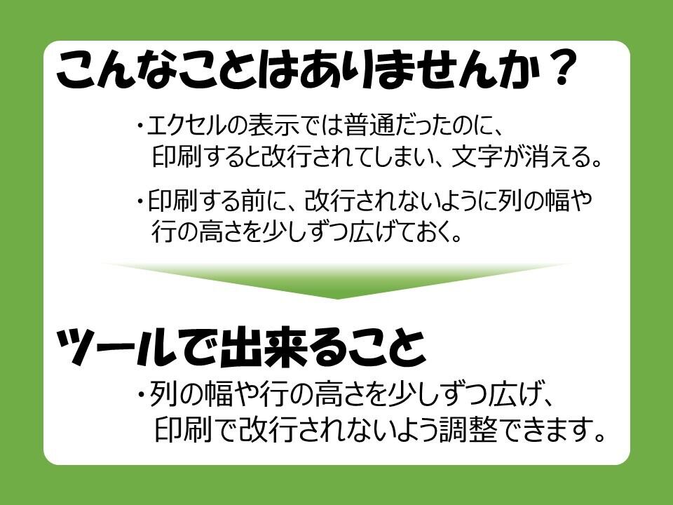□印刷するときの改行されることなどを防ぐためにレイアウト(幅・高さ)を調整するツールです。