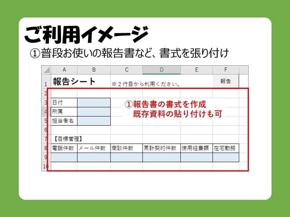 □すでにお使いの報告書など、任意の書式で進捗管理をすることができます。